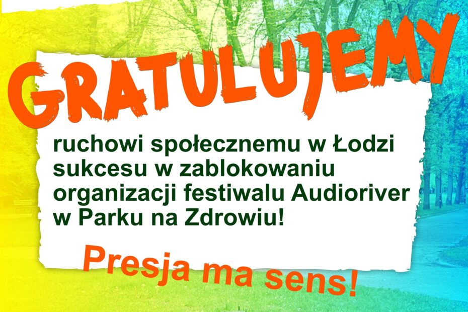 Jeśli zadawaliście sobie kiedyś pytanie o sensowność istnienia ruchów społecznych i miejskich, to łódzki przykład sprawy festiwalu Audioriver najlepiej tę kwestię wyjaśnia i to na kilku płaszczyznach. Po pierwsze, wspólne działanie społeczników, specjalistów i zwyczajnych mieszkańców miasta, uchroniło przed dewastacją… Read More »Społeczniacy łódzcy – GRATULACJE